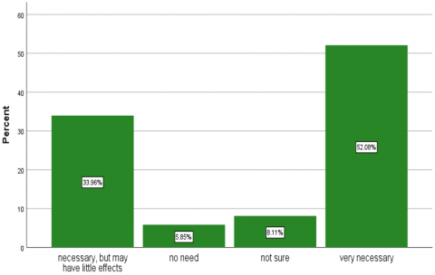 Finally, more than 85% of respondents believe that the popularization of green finance is essential, indicating that most of them are aware of the risks associated with climate change and the potential role that green money could play in reducing those risks. Less than 6%, on the other side, said it was not vital for the advancement of environmental preservation. Most of the respondents feel that the deal will have a favorable impact on environmental protection.