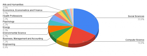 What is the distribution of scientific publications by research area within the scope of this study? |