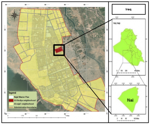 Figure 3. The location of the study area (Al-Hindiya neighborhood) in the city of Najaf