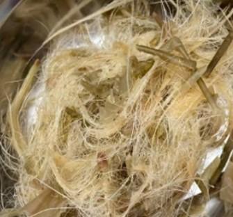 A) Raw materials for extracting fibers consist of the following: 1) fresh leaves of Sansevieria stuckyi God.-Leb. with a diameter of 1 centimeter, cut into lengths of 20 centimeters and a weight of 1 kilogram per set in each experiment, 2) five liters of clean water for use in dissolving, and 3) 0.05 liters of Effective Microorganisms (EM).
