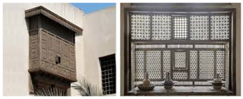 Generally, Mashrabiyas were installed in traditional houses and royal residences, and on occasions, it was used in open areas as a structure. There are a lot of types of Mashrabiya and wooden latticework designs of patterns and ornamentation were different from a region to another [36].
