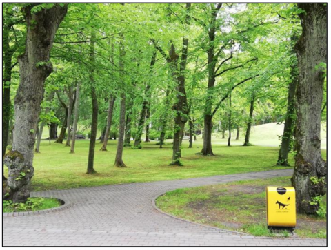 In Latvia, eco-aesthetics practices have been adopted by reorganizing public spaces and urban parks in line with sustainable environmental principles. Initiatives have focused on enhancing local biodiversity and protecting natural habitats in Latvian cities, by integrating green spaces, wetlands and native plants into urban design. These initiatives have helped improve air quality and reduce the urban heat island effect, while providing attractive and ecologically balanced environments for residents. The water element, with its river view, has also been exploited and employed within the park, making it livelier and more attractive, and providing wooden seating and umbrellas along the paths to provide comfort during visitors’ rest and informational signs. Park officials have taken care to open an information center for visitors to guide them and provide services to them when needed, and to provide volunteer teams to hold workshops and cultural seminars on environmental issues for the purpose of awareness [30, 31]. The park design focuses on green spaces and natural elements, as seen in Figure 1, where the tree-lined paths and environmental features create a sustainable and eco-friendly environment.