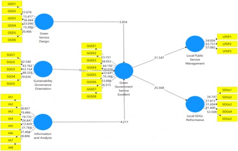 Thus, this study needs empirical proof of green government service excellence in improving public service performance and achieving the Local SDGs. In addition, this study needs to test the mediation of green government service excellence with the following hypothesis.
