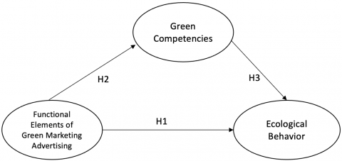 H1: Functional elements of green marketing advertising and green competencies are significantly correlated.