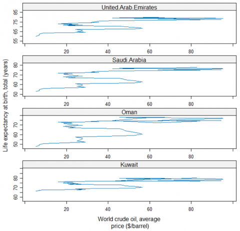 In the 20th century, the growth of industrial oil production on the Arabian Peninsula and the subsequent increase in oil prices had a profound impact on the level and quality of life in Saudi Arabia, Kuwait, the United Arab Emirates, and Oman, facilitating more sustainable political, socio-economic, and cultural development in these countries. One notable indicator of improved living standards was the increase in life expectancy at birth, which was directly associated with rising revenues from oil sales due to the escalation of global prices since the early 1970s.