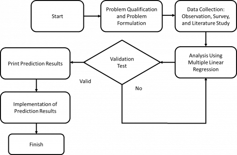 In the second stage, verification was carried out with multiple linear regression analysis used to test the influence of various environmental control factors on individual and group vandalism behavior. The analysis was carried out using Minitab 19 where software can help solid and tested statistical algorithms to calculate regression coefficients, R-squared, standard deviations, and various other accuracy measures, this can also display the results of graphing, checking assumptions, and validating models [47]. The software program to see the influence of each environmental control factor of CPTED such as Territoriality, Surveillance, Access Control, Physical Support, Image Management, Target Hardening, and Temperature on the vandalism intentions of TCP visitors, Respondents use the online form application that has been provided to assess and describe the characteristics of relevant attributes concluded by cross-tabulation data processing. In identifying research data, researchers conduct generalized data analysis and describe it in the form of diagrams. Flowcart can be found in Figure 1.