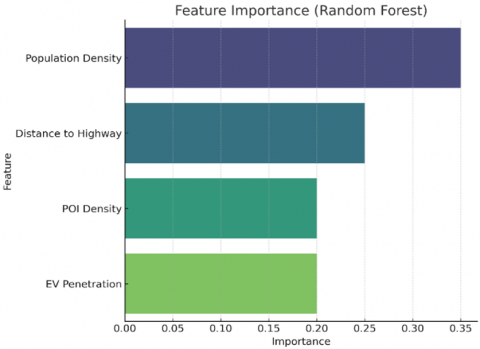 The proposed hybrid model was validated through a multi-level approach. The AHP component was tested for logical consistency (CR = 0.08) and subjected to sensitivity analysis. The Random Forest regression model achieved high predictive accuracy (R² = 0.89), validated using standard metrics and feature importance alignment. Final suitability maps in Figure 14 were visually and spatially validated against high-demand corridors, with strong overlap observed near urban centers and transport routes. These validations collectively demonstrate the model’s robustness, practical relevance, and potential for scalable deployment in real-world EV infrastructure planning. The sensitivity analysis is carried out and it indicates that ±10% changes in AHP weights result in minimal impact on top-ranked locations, confirming the robustness of the model except in scenarios prioritizing traffic volume, where minor rank shifts occurred. Based on visual interpretation of the final suitability heatmap, approximately 15 to 20 spatial clusters were identified as highly suitable zones shown in Figure 14, primarily located along key transport corridors and urban centers. Informal feedback was collected from two municipal planning officers and a MSEDCL engineer involved in EV grid readiness assessment. They affirmed that the selected criteria, especially transformer access and proximity to highways are consistent with operational considerations in EV infrastructure siting. This feedback supports the practical relevance of the proposed hybrid framework.