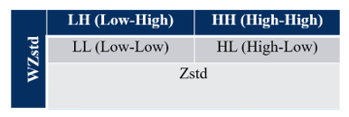 Furthermore, it identifies whether the autocorrelation is positive autocorrelation (quadrants I (HH) and III (LL)) or negative autocorrelation (quadrants II (LH) and IV (HL)). For clustering and dispersion patterns between locations, it can be presented with Moran's Scatterplot which shows the relationship between the observed value at a location (standardized) and the average observed value of the locations neighboring the location in question. Moran's Scetterplot is one way to interpret Moran's I statistics. Moran's Scetterplot is a tool to see the relationship between Zstd (the standardized observed value) and the local mean calculated from the weighting matrix WZstd (the local mean calculated from the spatial weighting matrix). For more details, see Figure 1.
