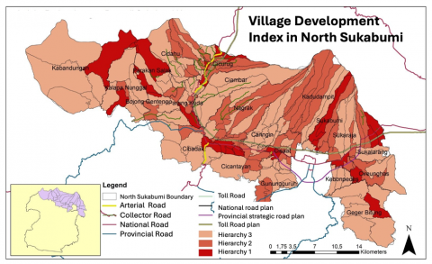 As we know, the availability of facilities is not evenly distributed across villages. Therefore, this research was conducted to determine the hierarchy of villages in the prospective new autonomous region of North Sukabumi Regency. Identifying available facilities and identifying the ease of accessing facilities in an area can determine the hierarchy of growth centers. Infrastructure is a key variable because infrastructure service areas are the beginning of the development of growth center locations. Facilities or infrastructure play an important role in accelerating regional development and the community's economy, and also affect the improvement of community welfare and reducing inequality between regions [37].