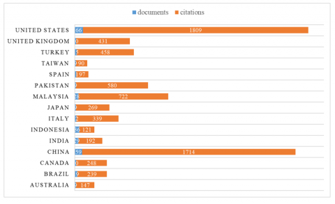 Figure 4. Number of citations and documents per country