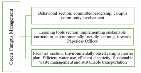 Green campus management is characterized by active stakeholder engagement and effective change management. Aedi emphasizes that the successful implementation of green initiatives necessitates the support and participation of all members of the campus community, making change management integral for fostering a culture of sustainability [10]. Herzanita et al. [11] examine the barriers to implementing green building practices within campus settings, emphasizing that addressing these challenges is crucial for effective management. Moreover, the evolution of the green campus concept highlights its adaptability and responsiveness to contemporary demands for sustainability. Zhao et al. [12] note that this concept has emerged in response to societal pressures and formal regulations aimed at promoting sustainability in education, underscoring the growing importance of integrating sustainability into university management practices. Additionally, Alsharif [13] asserted that the green campus model involves not only environmental education but also the integration of social and economic dimensions of sustainability, thereby creating a holistic approach to campus management.