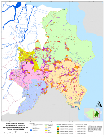 Figure 2. Distribution of hotspots and burnt areas in Ogan Komering Ilir (OKI) Regency from 2020 to 2024