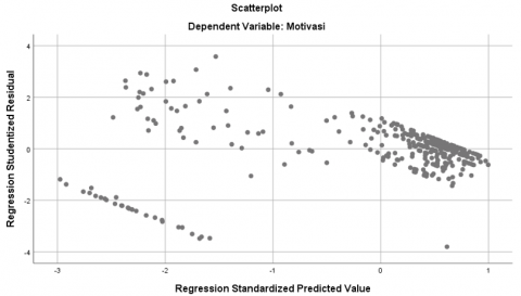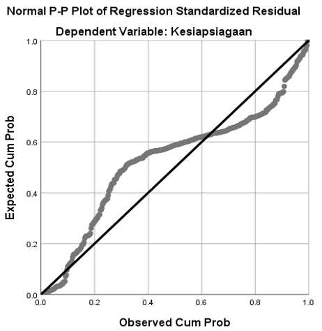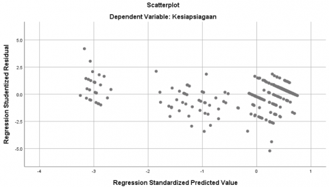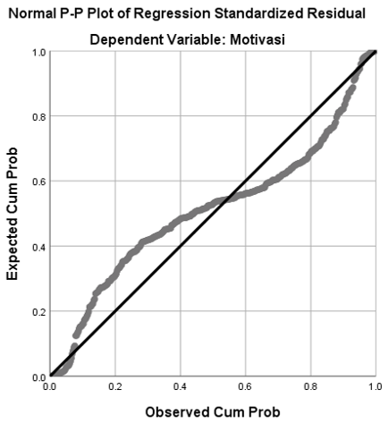 The normality test in this study was conducted using the Normal Probability Plot graph to observe whether the residuals were normally distributed. The multicollinearity test was assessed using the Tolerance value (< 0.10) and VIF (> 10), which indicate the presence of multicollinearity symptoms [22]. The heteroscedasticity test was carried out using a scatterplot graph between predicted values and residuals to detect any patterns of variance inhomogeneity [23].