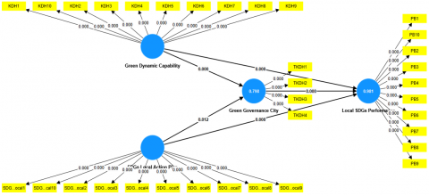 Rapid urbanization is leading to complex environmental challenges, including ecosystem degradation and increased carbon emissions. Surabaya, as a metropolitan city in Indonesia, faces challenges in maintaining a balance between economic development and environmental sustainability. This study aims to analyze the role of GDC and SDGs Local Action Plan in optimizing Green Governance City to achieve Local SDGs Performance. This study uses a quantitative approach with a cross-sectional survey method of Surabaya city government employees who have a role in the planning and implementation of green policies. The data was analyzed using PLS-SEM. The results of the study show that GDC and SDGs Local Action Plan have a significant effect on Green Governance City and local SDGs performance. In addition, Green Governance City contributes to the achievement of Local SDGs Performance. This study provides insight for local governments in designing more adaptive and innovation-based Green City policies. The practical implication is that cities that want to accelerate the transformation towards a Green City need to strengthen green capabilities and develop a sustainability strategy based on the SDGs Local Action Plan.