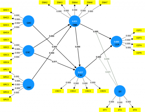 2.1.3 Green relational capital (GRC), environmental management accounting (EMA), and corporate sustainability culture (CSC) impact corporate environmental performance (CEP)