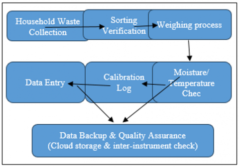 The waste audit process employed standardized experimental equipment and calibration protocols to ensure precision and replicability. The primary instruments included digital weighing scales, segregation containers, moisture and temperature meters, personal protective equipment (PPE), and digital tablets for data entry.