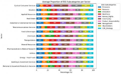 Ignoring this granularity can obscure critical insights about how sustainability performance varies across business sectors [28]. For instance, two firms with identical ESG scores may differ significantly in their subcategory profiles—one excelling in emissions reduction and another in community engagement. Moreover, some subcategories may show higher relevance for sectoral risk exposure, particularly in industries like energy, manufacturing, or finance.
