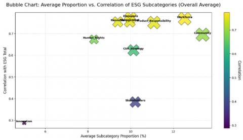 Figure 7. Bubble chart: Average proportion vs. Correlation of ESG subcategories