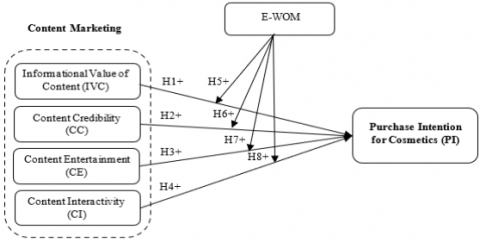 H5: Electronic word-of-mouth (e-WOM) positively moderates the relationship between the informational value of content marketing and Gen Z’s purchase intention toward vegan cosmetics.