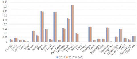 Figure 1. Distribution of slum areas in Tangerang Regency (2019–2021, in km²)