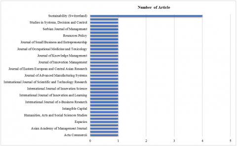 An analysis of the 40 selected articles revealed a concentration of publications across a relatively small group of well-established academic publishers. As shown in the publisher distribution Table 4, MDPI emerged as the most dominant publisher, contributing 5 articles of the total, primarily through its high-impact journals such as the Sustainability and Journal of Risk and Financial Management. MDPI’s contribution underscores its focus on interdisciplinary research that integrates sustainability, environmental governance, and strategic management [11]. Following closely, Elsevier published 3 articles, mostly in the journal Resources Policy, which has become a widely used platform for open-access research on ESG issues, particularly within MSMEs and emerging markets [4]. World Scientific, Routledge, and Emerald, each of them contributed 2 articles, with key journals like Journal of Knowledge Management and International Journal of Innovation and Technology Management, both of which emphasize the strategic alignment of HR practices with organizational sustainability goals [8]. Meanwhile, publishers such as Springer Nature, Academic Press, and SAGE also have notable presence, which articles focused on innovation, corporate social responsibility, and SME performance in sustainable contexts.