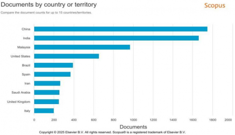 India ranks first in the number of publications, followed by several other Asian countries, Europe, and the United States. This shows that bio-lubricant research is not only limited to developed countries, but is also widely developed in developing countries with abundant plant and organic resources, including Indonesia and Malaysia [33]. This distribution reflects the close relationship between local resource potential and a country's research focus, as seen in Figure 5.