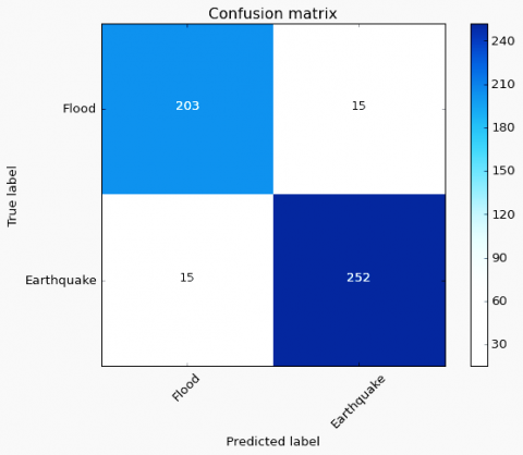 When we processed our dataset on VGG-19, we got an accuracy of 94.22%. This model consists of 19 layers (16 convolution layers followed by Max. Pool and 3 fully connected layers) and finally a softmax classifier. As our model contains only flood and earthquake class categories, modification of the pre-trained model is done by adding own predictive layers in place of softmax classifier as we require only 2 class classification. This model has an input size of 224×224. Here we had taken 2423 images of DISASTER dataset, in which training set contains 1938 images and testing set contains 485 images. Adam optimizer is used for computing the learning rates. Here we had taken 5 epochs to classify the images and run the process on a single CPU system.