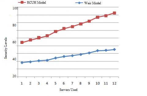 The proposed RCUH model exhibits better performance in terms of security and cracking time. The cracking model is used after the training to test the model for password power, and even passwords to expand the dictionary of passwords that are used for devaluation. Until devaluation, a network exploit method will be used to extract the password file. The Security levels of the proposed model and the traditional methods are depicted in Figure 5. The password if takes more time to crack, it represents that the password is strong enough to provider security to the system.