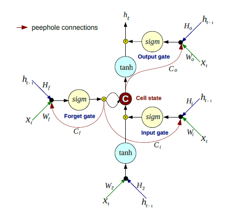 Figure 3 is an LSTM memory block described below is for a single chain; the model consists of a single memory block connected to a single self-recurrent link. One of the most significant differences between MD-LSTM and the One-Dimensional LSTM (1D-LSTM) in terms of operations is that numerous interconnections are available for each axis. These links are responsible for transporting context data from one location to another.