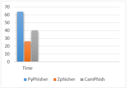 As shown in Figure 1, Zphisher is the fastest phishing tool and does an attack in 26 seconds. Followed by the CamPhish phishing tool, which does the attack in 40 seconds.