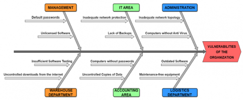 In Figure 3 it can be seen the main departments that are more exposed to vulnerabilities. Through Ishikawa diagram shows the potential causes and effects if we don’t properly protect the organization’s most valuable assets. Also, this graphic diagram helps to do a deep analysis of all departments in the organization. The results show the need for investment in cybersecurity analytics, preventive measures, providing training to employees, and updating their security models.
