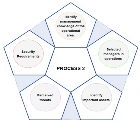 (B) Process 2. Identify operational area management knowledge. In this part of the process, the activities are defined, and the security requirements and assets’ perceived threats are identified by selected operational area managers. Based on an operational point of view, we gather information like important assets, security requirements, and others, with a scope on a tactical level (see Figure 4).