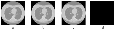 Figure 3. (a) Cover image, (b) Watermarked version of cover image with PSNR value 78.6 dB, (c) Restored image with PSNR value 73.84 dB, and (d) No numerical difference can be found out/identified between the host and recovered image