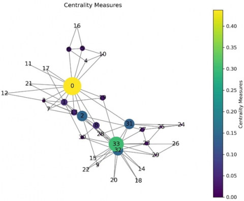 where, Mp,i is the count of neighbor sets related to the hub pi. Within the expression, it is integrated to the count of potential neighbor sets of hub pi, where kpi = (kpi-1)/2, with kpi being the degree of hub pi. Figure 3 illustrates the representation of centrality measures used to analyze node importance within the VANET communication network.