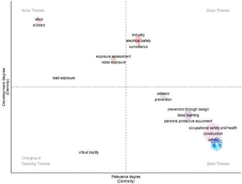 Figure 6. Thematic map of the relationships between occupational health and safety study topics and falls