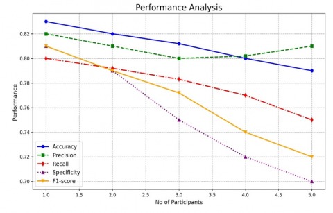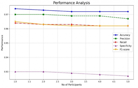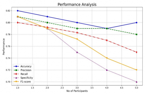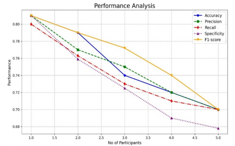 Figure 17. Performance of Fed-Hybrid-LSTM approach in recognizing the varied threats for the increased number of participants