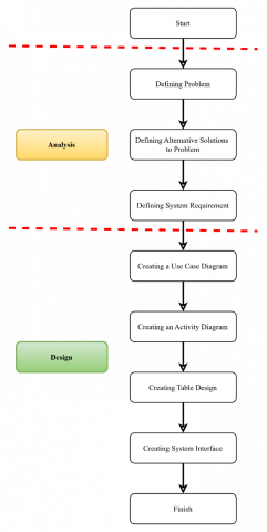 Upon completion of the analysis stage, the process advances to the design phase, where use case diagrams, activity diagrams, table structures, and system interfaces are developed using the sprint approach. An explanation of each step in the process is provided below.