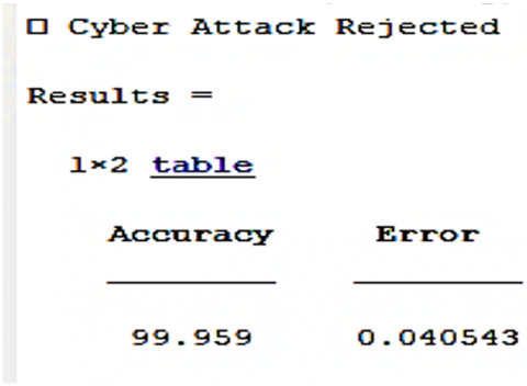 When looking at Figure 18, it can be observed that the training efficiency of the proposed DL algorithm in blocking the attack packets and extracting the original data samples was tested in the same quantity of data packets for the group N = 1000. A high training efficiency was recorded, reaching 99.96% with a very low error rate of 0.04%, as shown in the figure, that indicating the proposed model's ability to eliminate harmful DoS attack floods with successful rejection. Also, the performance measures obtained using the proposed model in detecting and blocking DDoS attacks for WSNs might be shown in Table 9.