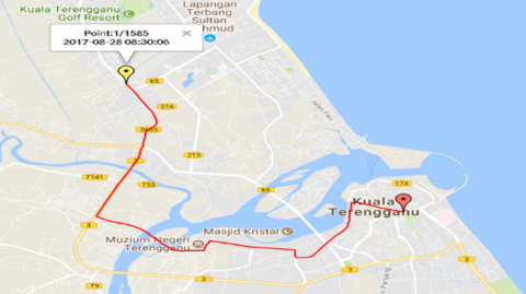 Ten runs were conducted at 7.30, 8.00, and 8.30 am along the chosen road to collect data. For the real-time driving data collection method, there are three main methods of collecting data which chase car technique, on-board measurement technique and hybrid technique. Chase car technique is when instrumented cars record second-by-second speed data as they follow target vehicles. In contrast, on-board measurement is when speed and time data are collected along a defined route utilising a vehicle's on-board real-time logging system. Also known as a combination of on-board measuring and circulation driving, the hybrid method combines the two strategies [11]. For KTDC, the on-board measuring technique will be employed for data gathering because it is better suited for KT drivers' erratic behaviour to prevent risks like accidents and unexpected loss of control.