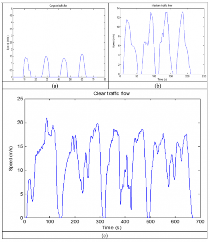 Then, the representative micro trips are identified to generate the driving cycle for each cluster. The selection of representative micro-trip depends on the distance to the cluster centre as the closest will be chose. The representative of micro-trips for each group are depicted in Figure 4 (a), (b), and (c). The micro-trips will then be merged to form the complete Kuala Terengganu driving cycle.
