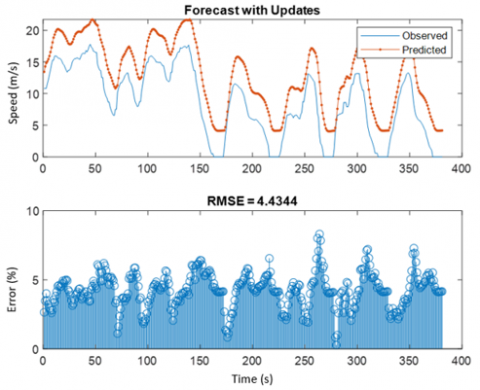 Figure 8 shows the plot of forecast and observed data of KTDC after the training process. Figure 9 in the other hand shows the RSME between speed and time of the forecast and test data. From the figure, it shows that the RSME is 4.4344. Lower RMSE values suggest a better match. RMSE is a good indicator of how well the model predicts the response, and it is the most relevant criterion for fit if prediction is the primary aim of the model.