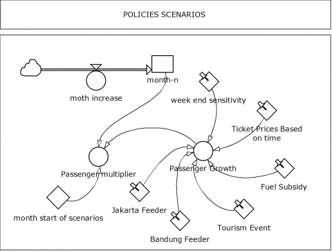 In the context of system dynamics analysis, the model is divided into population, passenger demand, passenger volume metrics, policy scenarios, and land availability. The population assumption is based on five key cities and the surrounding areas of Jakarta and Bandung considered representative of the region. HST passenger data is sourced from monthly records of HST Jakarta-Bandung, covering the period from January 2024 to January 2025.