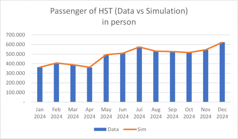 A system dynamics simulation shows that passenger growth on the Jakarta-Bandung HST corridor peaks in December, primarily due to holiday-related travel. However, from February to April, ridership remains low, posing challenges to the government’s operational and financial targets. To address fluctuations and balance with long-term development goals, strategic interventions such as service improvements, seasonal pricing, and enhanced feeder connectivity are essential.