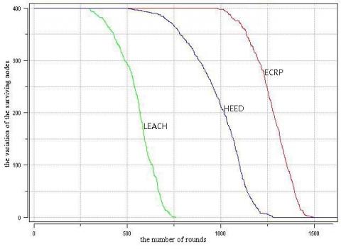 Figure 5. The variation of the surviving nodes with the number of rounds