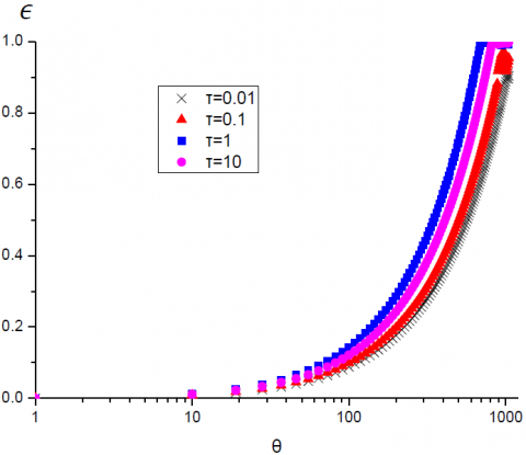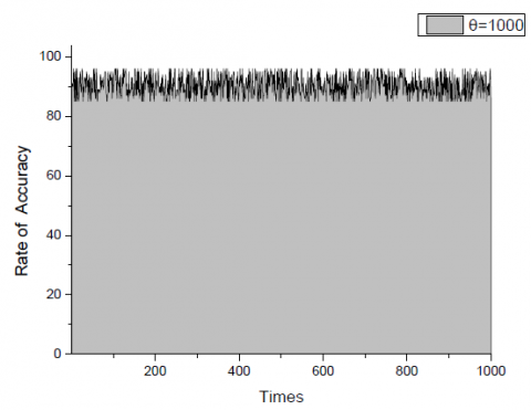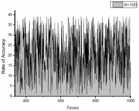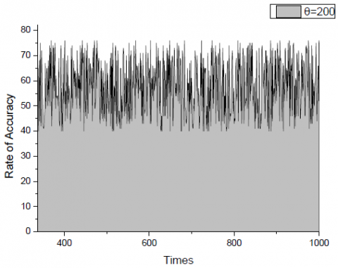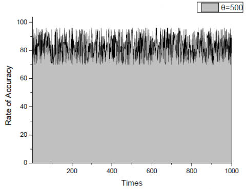 First, for each threshold value $\theta$, the interaction correct rates of P2P were compared, as shown in Figure 4, the selection of θ has a great influence on the accuracy of the algorithm. Then choose τ=0.01, 0.1, 1, 10 to calculate the corresponding privacy budget $\epsilon$ to evaluate the validity and robustness of the privacy preserving of the algorithm, as shown in Figure 5. The experimental results show that the key of the algorithm is to find the optimal threshold θ so that the local sensitivity on the cut-out graph Gθ is closer to the upper smooth bound, and the consumption of privacy budget ϵ of the P2P structure complied with the power-law distribution is minimal.