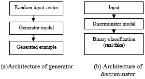 Generator and discriminator architecture GAN, models do not directly use pair of input and output, instead of that learns how inputs and outputs can be paired it is used for testing the ability to use high-dimensional complicated probability distribution (Figure 2). It will simulate features for planning, Generator uses up-sampling it learns joint probability distribution. A Generator will work for classification and regression. While discriminator learns the boundary between the classes it learns conditional probability distribution, discriminator uses down-sampling it is a binary classifier.