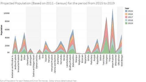 Figure 4a, 4b, 4c, 4d, 4e shows the dengue cases in India from the period from 2015 to 2019 across India. From the above inputs it is evident that the rate of dengue cases deviates over the years and it is observed that the variation is purely dependent on the factors of population, rainfall and humidity.