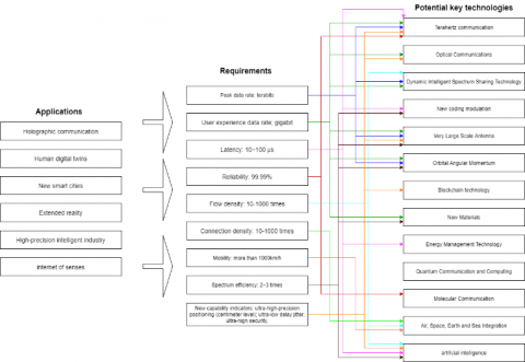 Figure 4. The mapping between 6G applications, requirements and potential key technologies