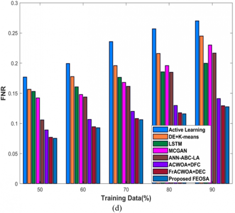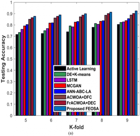 Table 1 shows the discussion of FEOSA. Accordig to the discussion conducted, it is comprehensible that FEOSA has resulted superior performance with excellent results in term sof accuracy while segmenting the speech and performing the speech diarization task. It is declared that FEOSA has provided high testing accuracy of 0.913, minimum diarization error of 0.566, FDR of 0.257, FNR of 0.128, and FPR of 0.104 for test case-1 while considering training data as 90%.