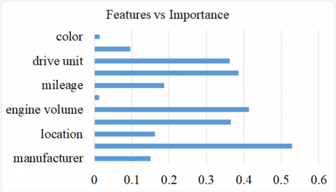 The original dataset contains 178397 instances and 16 features. The following features were collected for each ad: price, car, manufacturer, year, urlid, location, generation, body, engine_volume, fuel_type, mileage, transmission, drive_unit, steering_wheel, color, cleared_in_KZ. All features are shown in Table 1. The collected dataset may not always be in a format suitable for machine learning algorithms. To ensure the efficient use of machine learning algorithms, the data pre-processing step is critical. After analyzing our initial dataset, we identified several issues that needed to be addressed. For example, we removed faulty cars from the dataset. We also removed cars with incorrect engine sizes from the dataset. For further research, some features must be described in a numerical value, the numerical data are described in Table 2. A method for assigning categorical variables to numeric ones is by identification numbers. We also removed the features “generation”, “urlid”, “car”, since these representations in a numerical value do not give any significance. “Generation” feature is not as important as the “year” feature, the presence of this feature in the dataset would lead to blurring of data points. “Urlid” is just a link to the ad, so this feature has no coherent value in the dataset. “Car” feature of a car often bears the title of ad, the car is determined by the features of “manufacturer” and “year”.